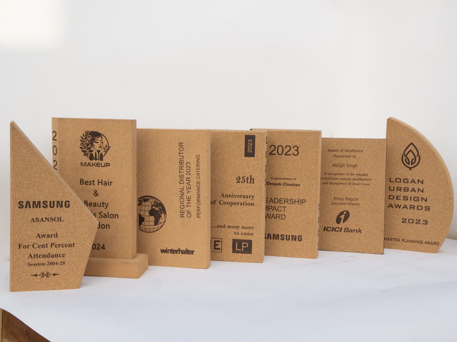 We manufacture premium cork trophies and mementoes with custom shapes, engraving, and branding — tailored for corporate events, institutions, and bulk recognition programs.